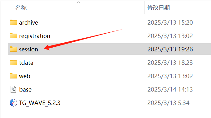 | 方式二：**直接粘贴**到 session 文件夹          | 用户可手动将账号文件复制粘贴到 TG-WAVE 安装目录下的 `session` 文件夹中，软件将自动识别导入。                          |