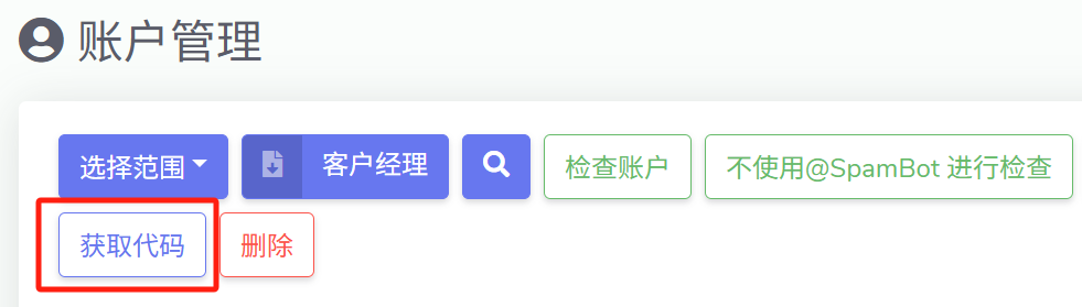 3. **勾选**该账号，点击导航&#x680F;**【获取代码】**&#x6309;钮