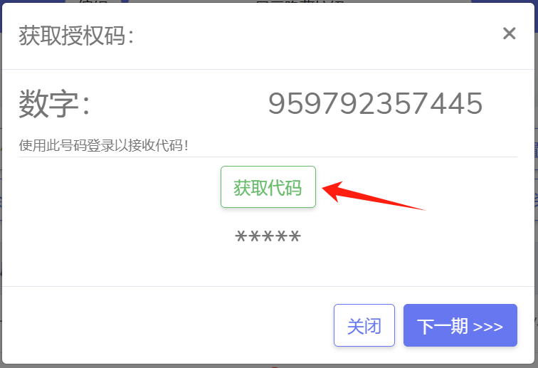 * 点&#x51FB;**【下一期 >>>】**&#x5373;可进入**下一个账号**的接码界面，供继续操作